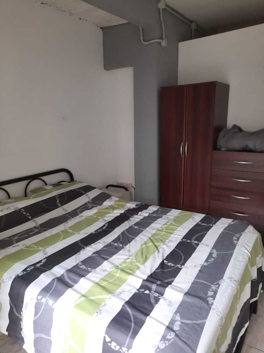 El dormitorio es muy luminoso y tiene una cama matrimonial y un amplio placard con buena calefacción.