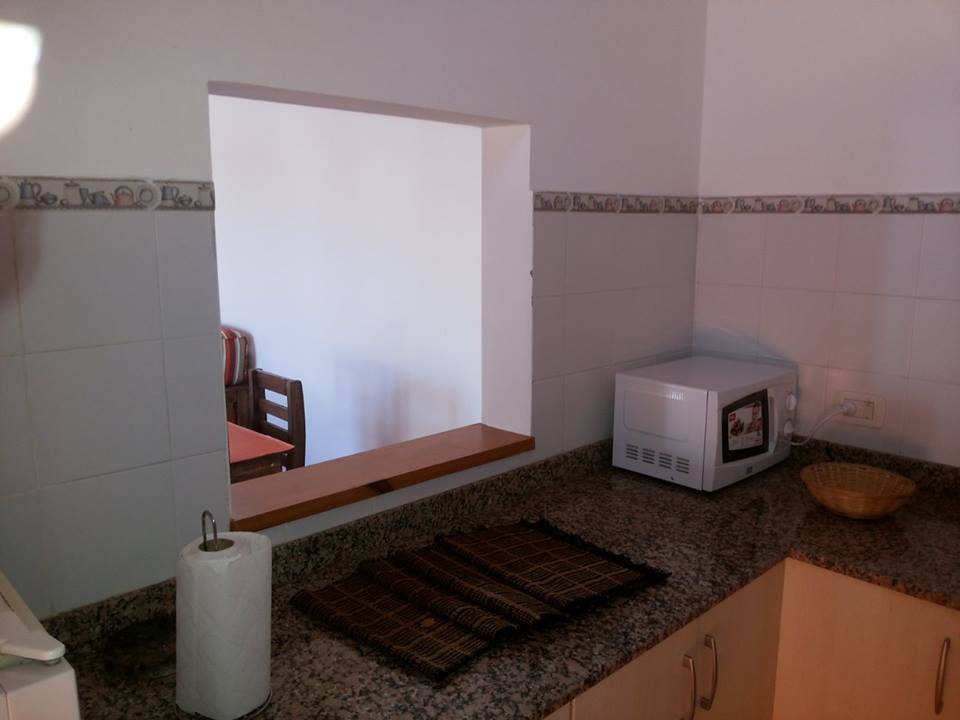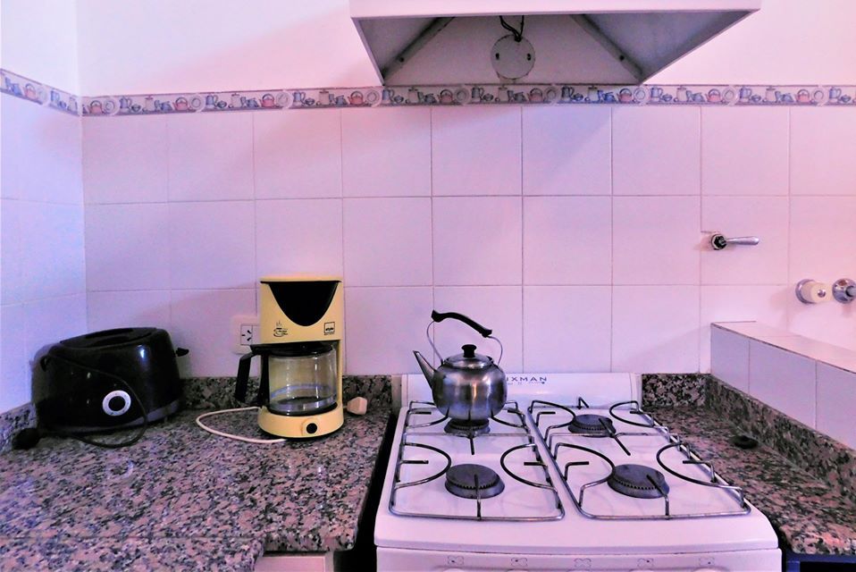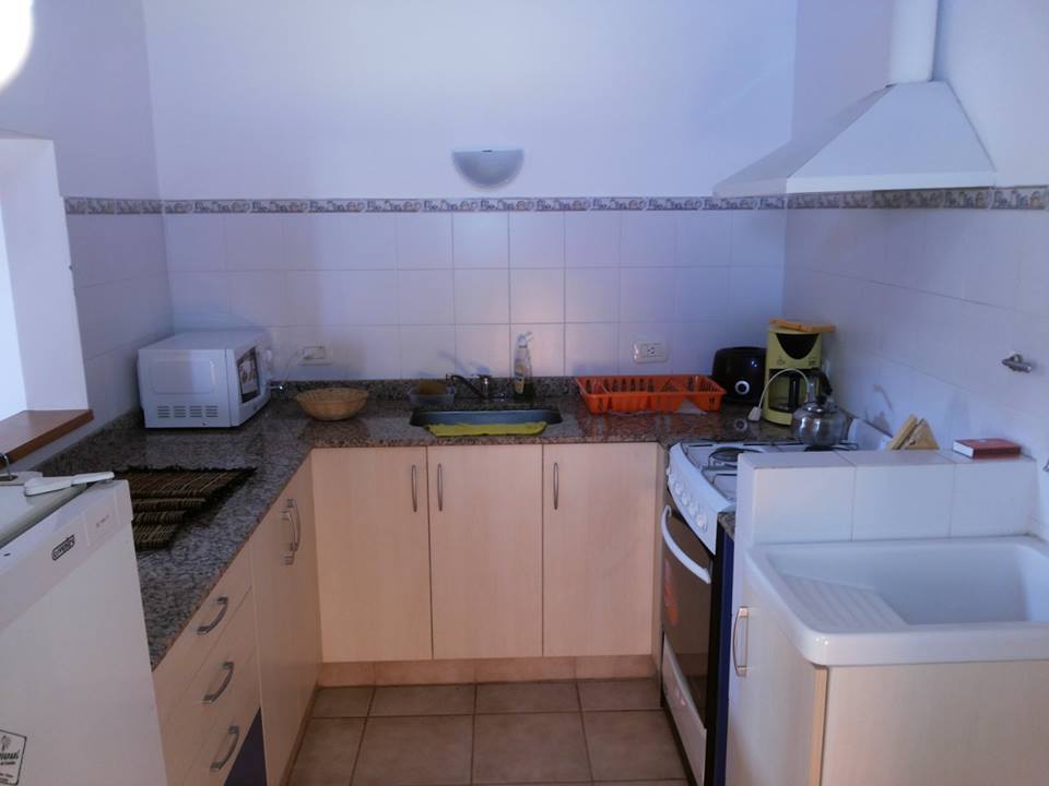 La cocina: tiene heladera, microondas, cafetera y tostadora eléctrica y vajilla completa.