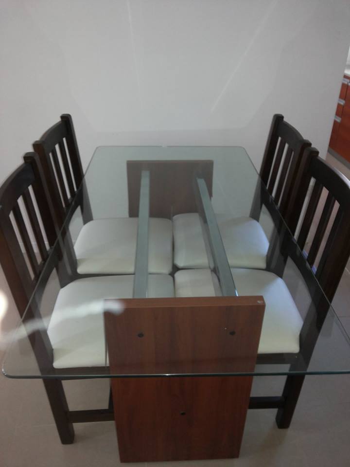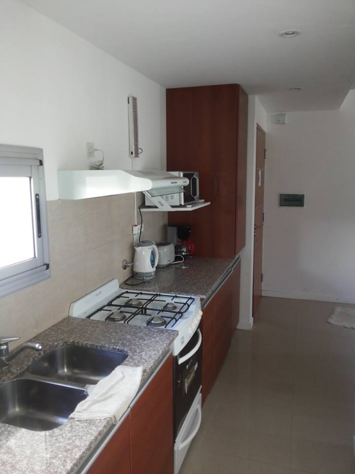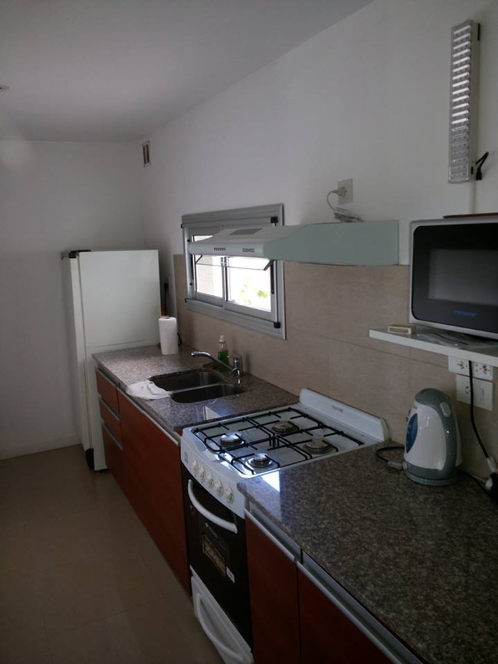 Tiene un sommier y un sillón que se hace cama de 2 plazas. La cocina está totalmente equipada. Tiene microondas, heladera, cafetera y tostadora eléctrica